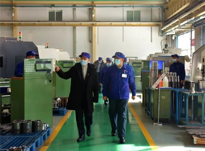 在閥門公司,斯?jié)煞蛞恍猩钊肷a安全管控中心、一車間、二車間、產品質量保證檢測中心和物資管理中心等生產現(xiàn)場進行檢查指導。