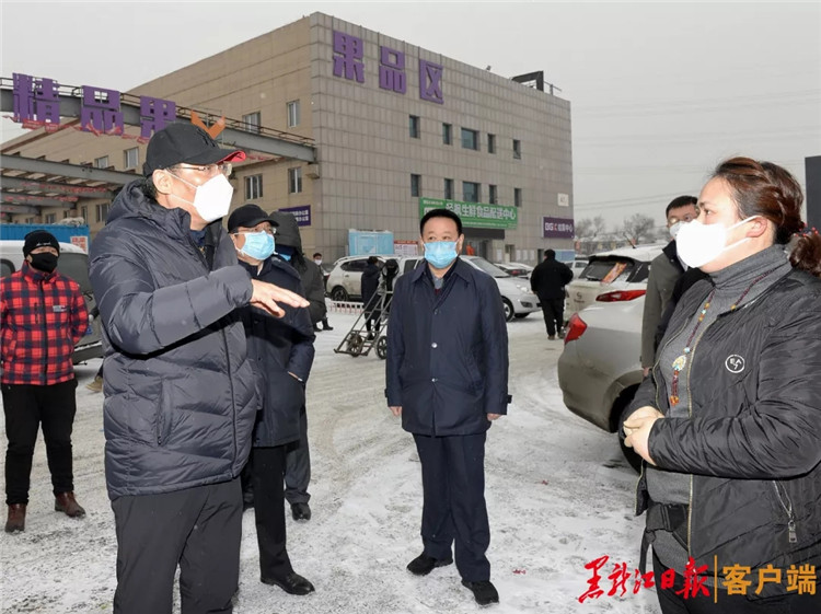 調(diào)研途中,王文濤還來到潤(rùn)恒國(guó)際食品交易中心,隨機(jī)查驗(yàn)這家市場(chǎng)防控措施落實(shí)情況,向經(jīng)營(yíng)業(yè)戶了解市場(chǎng)每日消殺措施以及個(gè)人防護(hù)情況。經(jīng)營(yíng)業(yè)戶反映蔬菜供應(yīng)充足價(jià)格基本平穩(wěn)。王文濤叮囑市場(chǎng)工作人員和下沉的松北區(qū)機(jī)關(guān)干部,要嚴(yán)格管控好市場(chǎng),確保市場(chǎng)和人員安全。