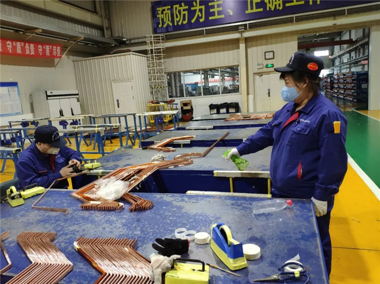線圈制造部張紅,安全生產(chǎn)示范崗班組長,扎根在別人避之不及的消毒工作中,撐起防疫工作半邊天,對班組生產(chǎn)作業(yè)區(qū)域消毒無死角。