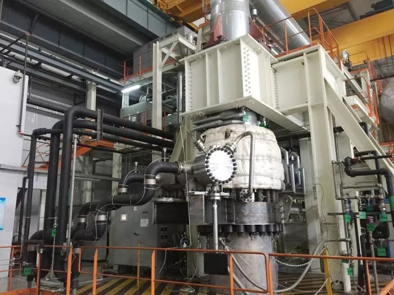 AP1000首臺國產(chǎn)化屏蔽電機(jī)主泵在沈鼓AP1000主泵全流量試驗臺架上(來源:沈鼓核電)