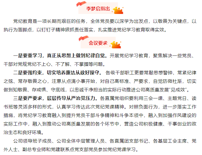公司黨委書記 李夢啟講授黨紀(jì)黨課